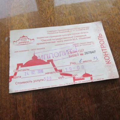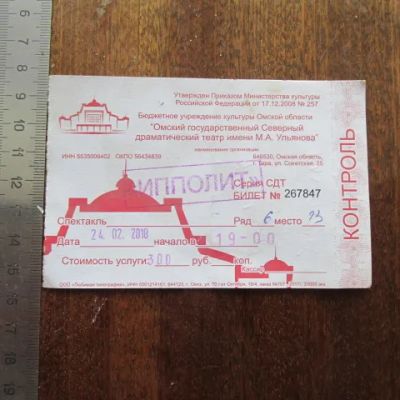 Билет неиспользованный. Северный драматический театр им. М. Ульянова г. Тара Омская обл. 2018 г.
